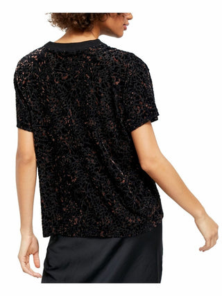 Blusa feminina de manga curta com decote em joia, preta, tamanho grande, da Free People