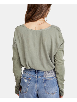 Camiseta feminina Free People com decote redondo e detalhe de pressão Sienna, verde, tamanho pequeno