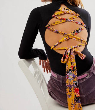 Camiseta unissex de manga comprida e gola redonda Free People, preta, tamanho extragrande