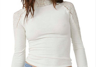 Blusa de renda branca canelada Free People, gola falsa, tamanho grande