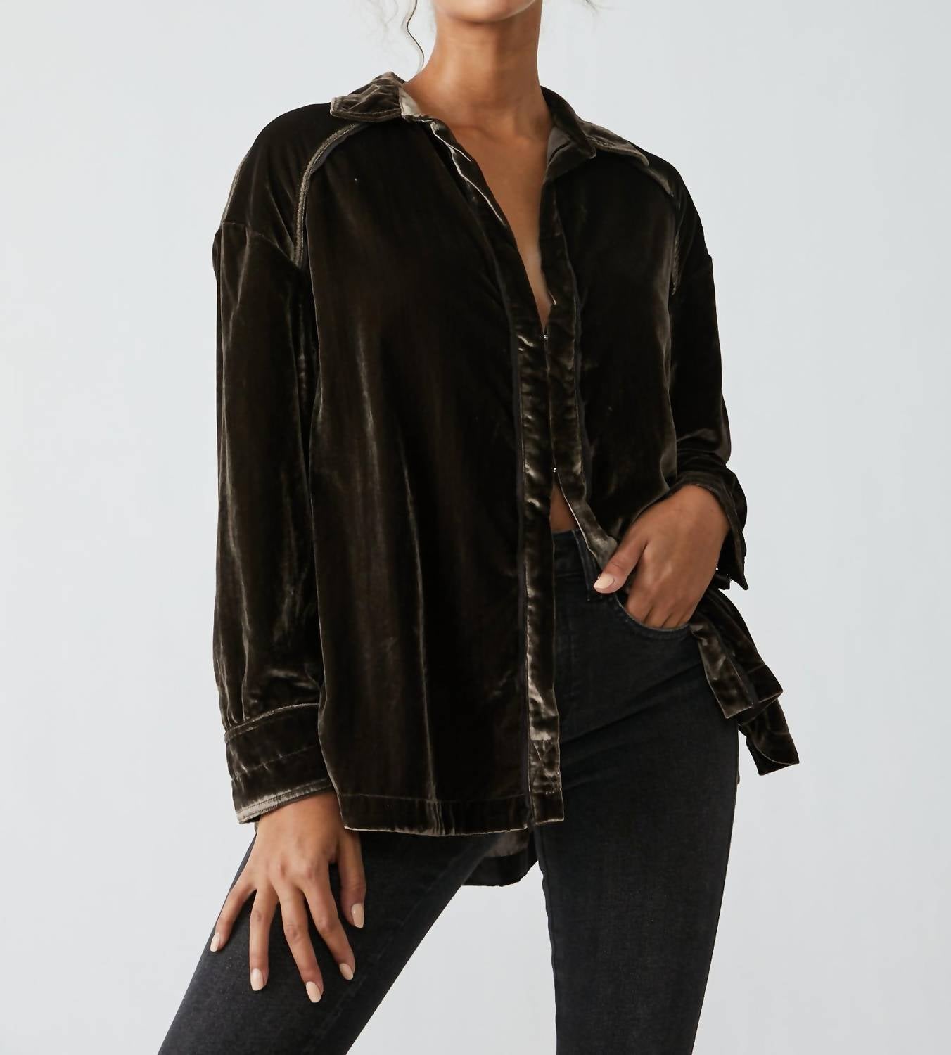 Uma blusa versátil que pode ser usada do escritório ao jantar! A Camisa de Manga Longa Marianne Velvet da Free People oferece um toque sofisticado a qualquer look em um tom marcante de Marrom Meia-Noite. Confeccionada em 75% Viscose e 25% Poliamida, esta peça apresenta gola clássica e caimento relaxado, acentuado por uma bainha inferior curva e detalhes desfiados para um toque casual. Originária do Vietnã, possui fecho de colchete para um visual impecável. O cuidado é simples: lave à máquina do avesso e seque no varal. As medidas para o tamanho pequeno incluem 132 cm de busto, 81 cm de comprimento e 73 cm de manga.