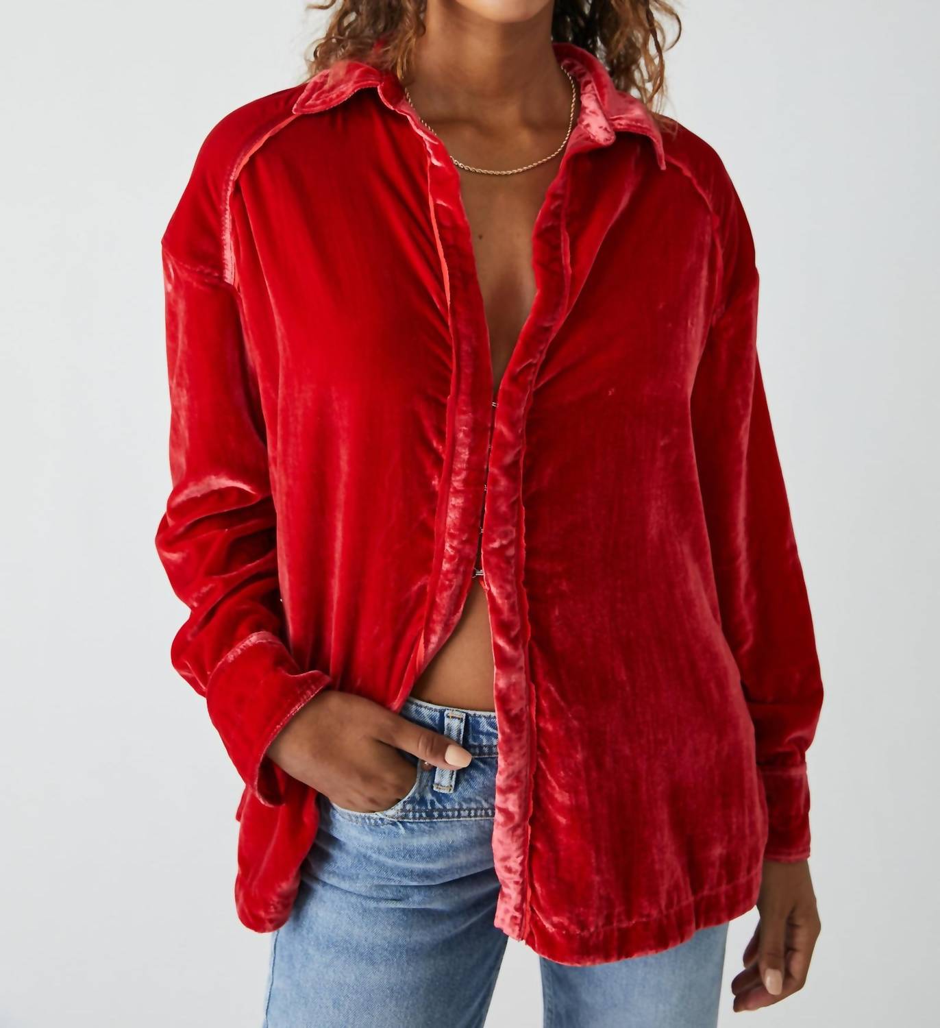 Esta camisa de botões é confortável e elegante. Eleve seu guarda-roupa com a Camisa de Manga Longa Marianne Velvet da Free People em um tom vermelho vibrante e marcante. Esta camisa feminina de botões apresenta mangas compridas confeccionadas em 75% Viscose e 25% Poliamida, com fecho de colchete para um visual impecável. Com gola clássica e bainha curva, esta camisa ostenta detalhes desfiados para uma estética despojada e confortável. Cuidados: Lavar à máquina com água fria, do avesso, secar no varal. Medidas para o tamanho pequeno: 138 cm de busto, 81 cm de comprimento e 73 cm de comprimento da manga.