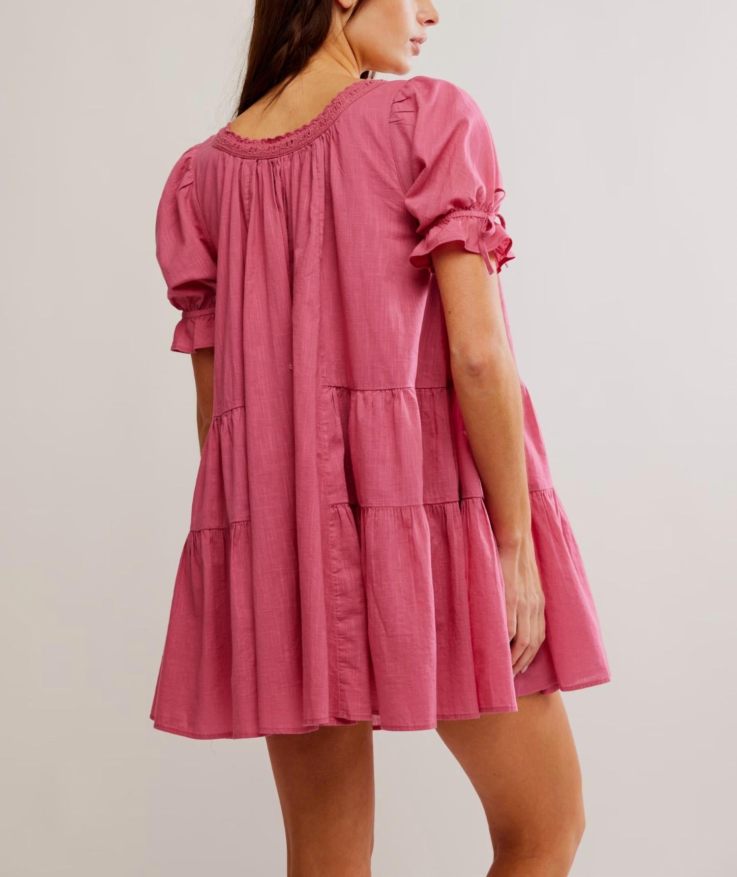 The perfect mini dress for those warmer months. The Free People Sandy Shores Babydoll Dress in Soothing Petal is a summer must-have with its puffy short sleeves and eyelet detailing. This mini dress is crafted from 100% cotton with a 100% rayon lining, designed in a shapeless A-line silhouette and featuring a scoop neckline. With a length of 33 inches and a bust measurement of 39 inches for a size small, it offers a breezy boho chic vibe suitable for various occasions including anniversaries and Valentine's Day. This pull-on dress is imported and easy to care for, with machine wash and tumble dry instructions.