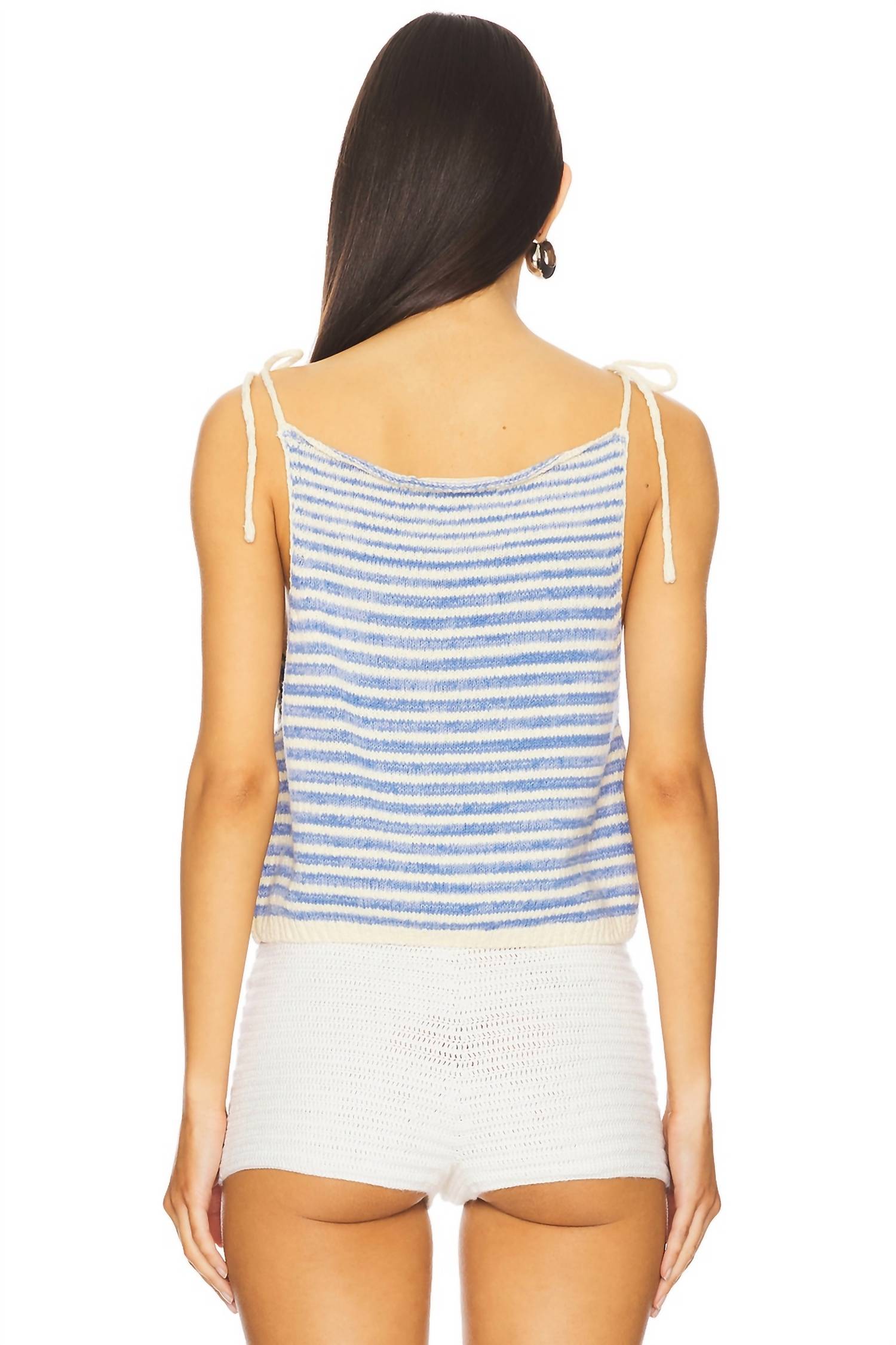 Caimento, tecido e funcionalidade. Esta regata preenche todos os requisitos. A regata listrada Free People com amarração nos ombros em Granada Sky oferece um caimento relaxado e soltinho com seu tecido macio e drapeado. Desenhada com alças finas e decote redondo amplo, esta regata exibe charmosos detalhes listrados e ombros adornados com amarração. Material: Mistura de algodão com 1% elastano, 3% poliéster, 40% acrílico e 56% algodão, confeccionada para um uso confortável com 38 cm de comprimento. Importado. Lavar à mão com água fria.