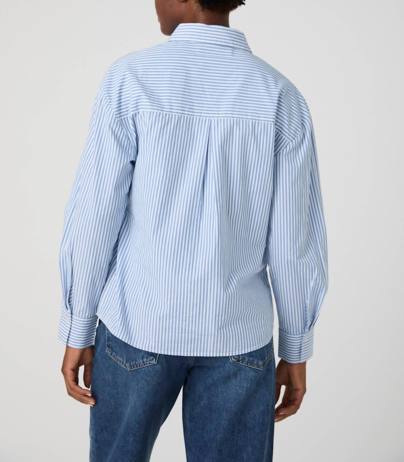 Uma blusa versátil que pode ser usada do escritório ao jantar! Eleve sua coleção de camisas com o Top Cambria Rosette da FRENCH CONNECTION, uma peça charmosa com estampa listrada em azul e branco. Esta blusa feminina apresenta mangas longas com punhos abotoados e gola clássica para um look atemporal. Confeccionada em algodão macio, oferece conforto e estilo com seu fechamento por botões e camada assimétrica adornada com corpete e fecho autoamarrado. Perfeita para quem aprecia detalhes únicos em um design de camisa clássico, esta blusa combina elegância com o uso diário.