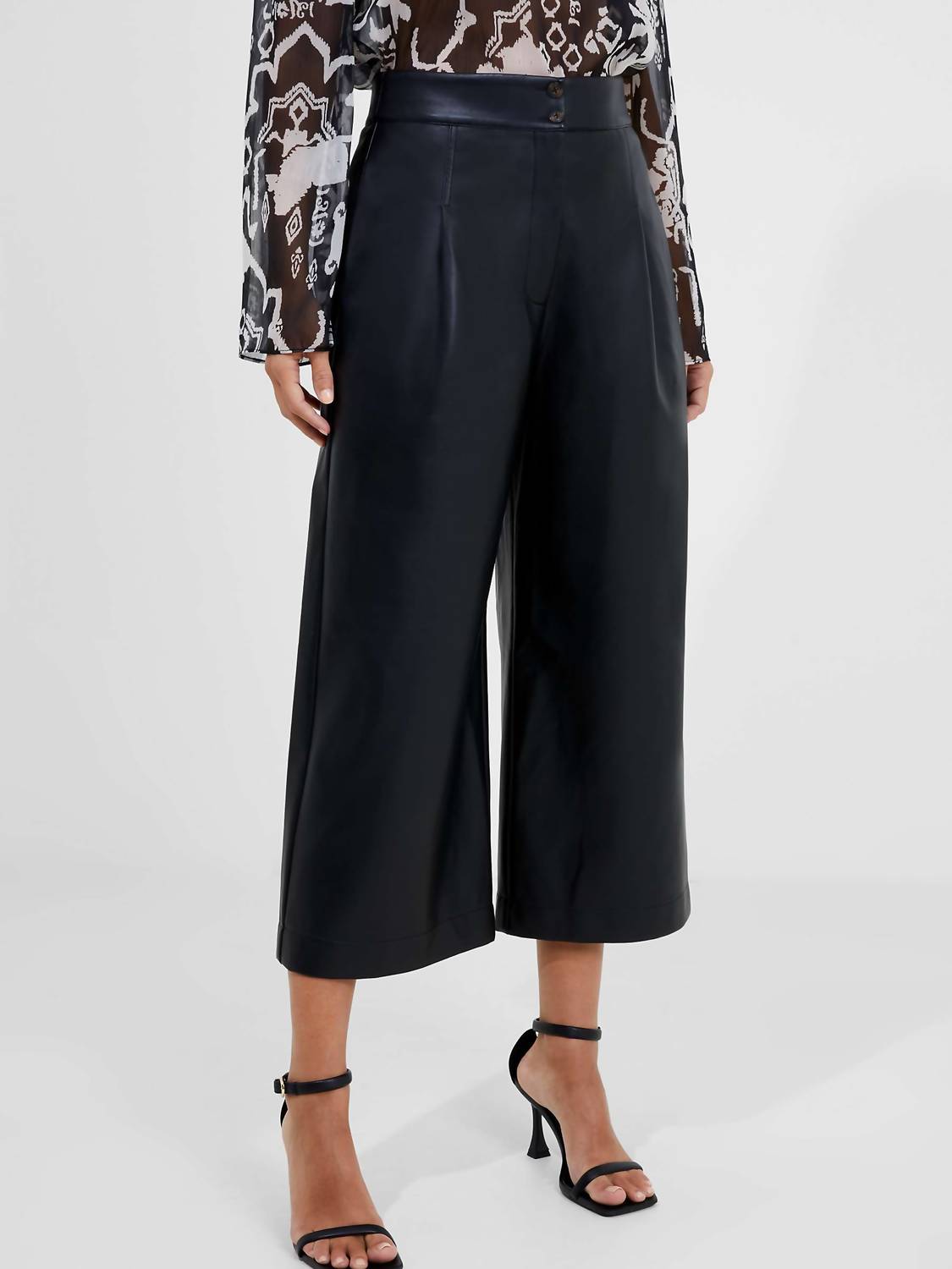 Esta calça larga Crolenda em PU apresenta um corte afunilado com passantes para cinto, bolsos laterais e comprimento cropped. Cropped. Botão, zíper oculto. 100% poliuretano.