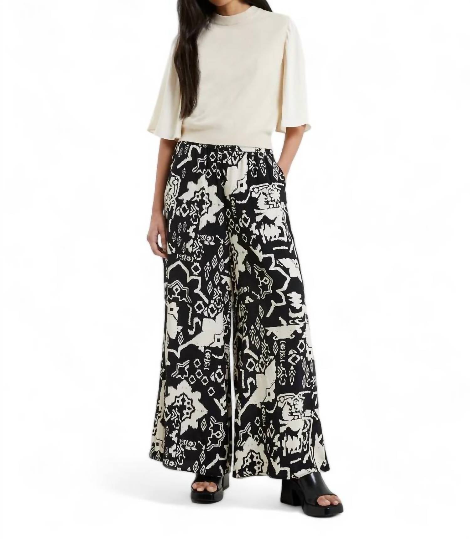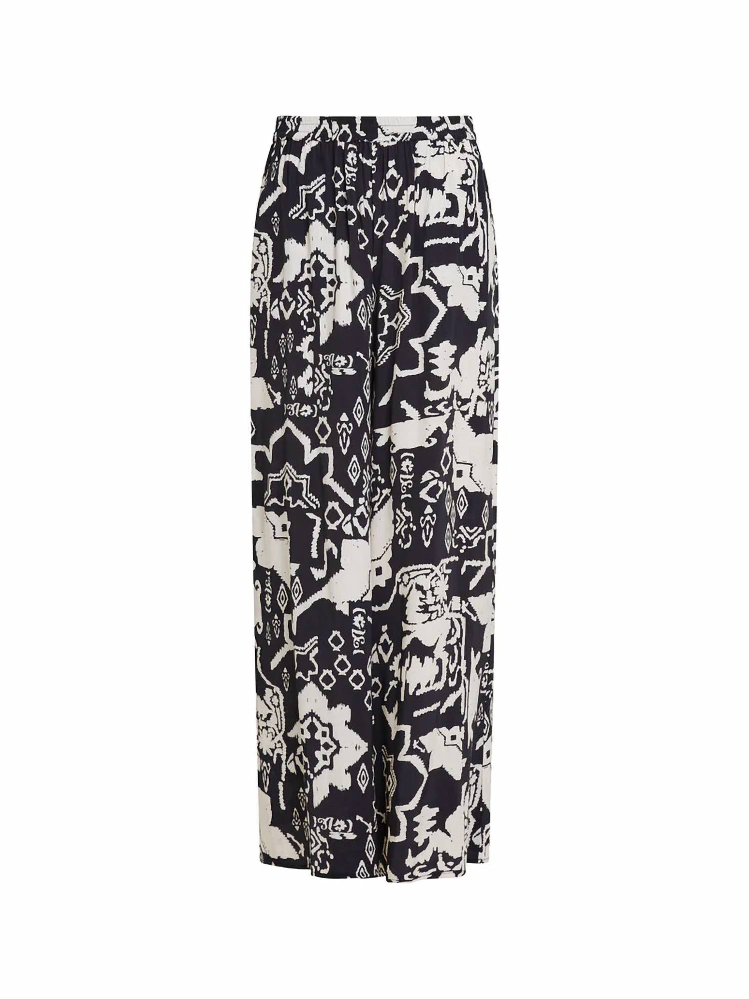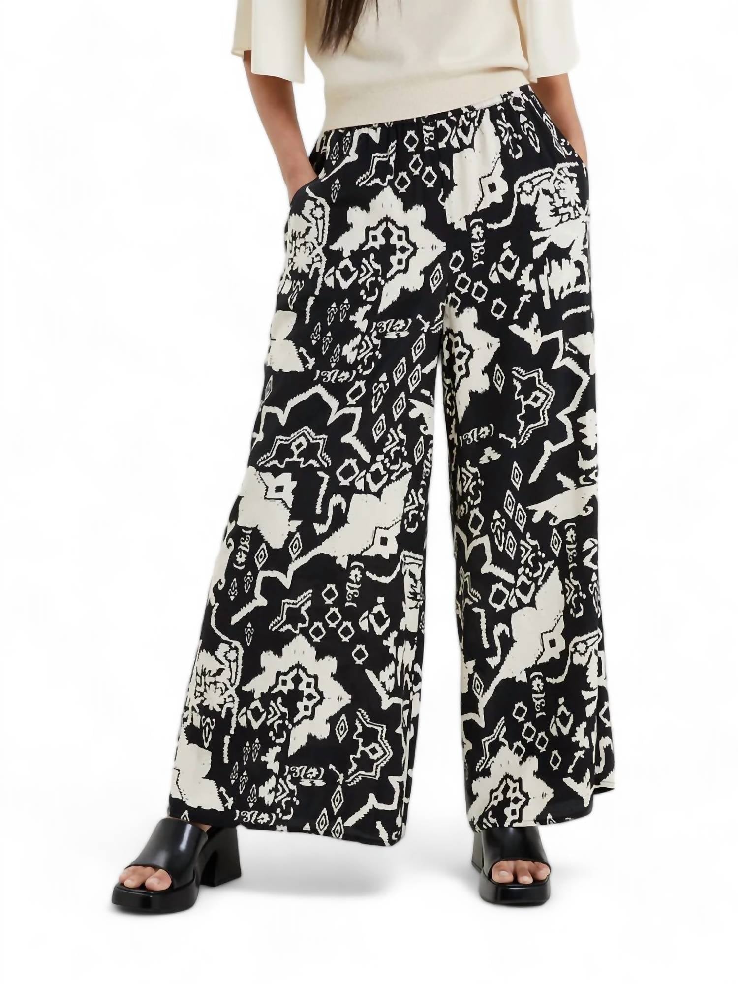Estas calças têm cós elástico para maior conforto, além de dois bolsos laterais. Elas oferecem um ajuste largo nas pernas e são projetadas para serem compridas. Confeccionadas em viscose Ecovero, o comprimento interno da perna no tamanho 10 mede 72 cm.