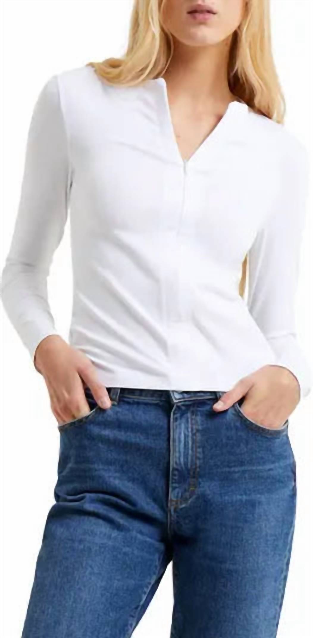 Uma blusa de manga comprida que você pode usar com jeans, saias, bem... quase tudo! Experimente um estilo descomplicado com o Top Zip It FRENCH CONNECTION em um sofisticado tom taupe. Este top de manga comprida, com decote em V e fecho de zíper frontal funcional, é confeccionado em uma confortável mistura de algodão. Cuide desta peça com facilidade seguindo as instruções de lavagem à máquina. Também disponível em branco, perfeito para opções versáteis de guarda-roupa.