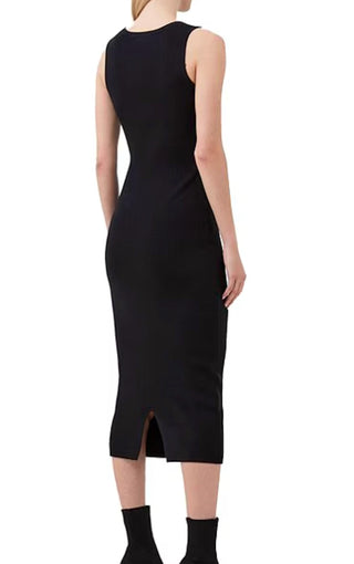Vestido justo com decote profundo 'Viven' de malha French Connection feminino, preto, tamanho 4