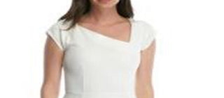 Vestido feminino French Connection Lula com decote assimétrico e bainha branca, tamanho 12