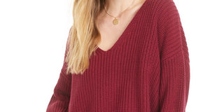 Suéter feminino French Connection Millie Mozart com decote em V canelado, marrom, roxo, tamanho X-S