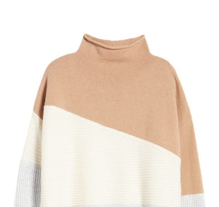 Suéter feminino com patchwork e gola funil, marrom, tamanho médio, da French Connection