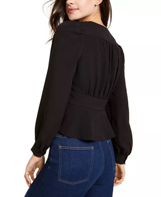 Blusa feminina French Connection Blaine Crepe com botões frontais, preta, tamanho 12