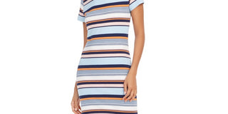 Vestido camiseta listrado com gola redonda feminino French Connection, azul, tamanho 10
