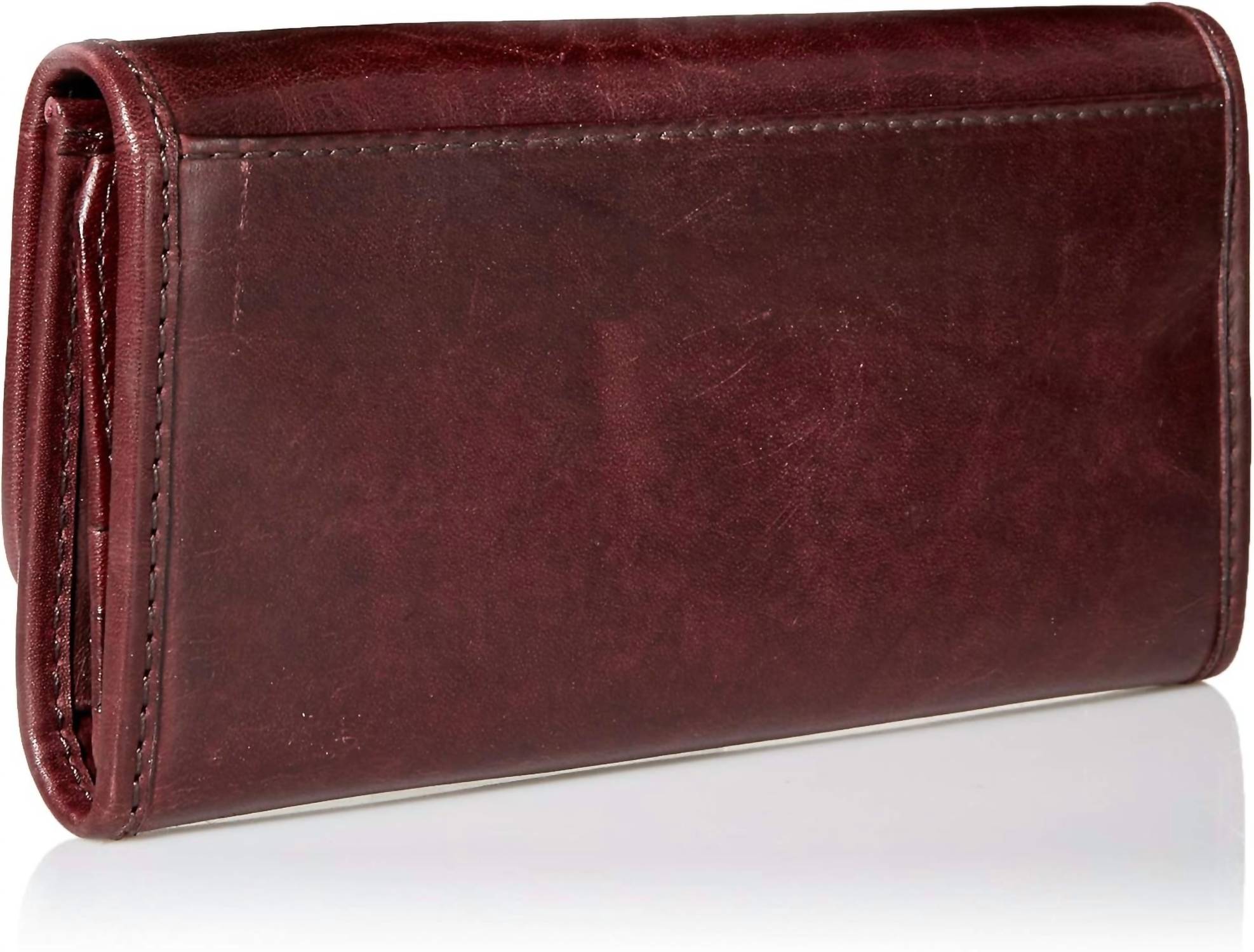 Eleve seus acessórios com esta carteira sofisticada, meticulosamente projetada para oferecer o equilíbrio perfeito entre estilo e funcionalidade. Sua aparência elegante e múltiplos compartimentos facilitam a organização de seus cartões e dinheiro. Apresentamos a Carteira Melissa da Frye, um acessório estiloso confeccionado em couro envelhecido pull-up de alta qualidade em um rico tom Merlot. Esta carteira continental com fecho de pressão oferece amplo espaço para armazenamento, com 14 compartimentos para cartões, 2 bolsos e 1 janela para documentos de identidade para fácil organização. O bolso externo na parte traseira da manga adiciona praticidade extra, enquanto o design compacto mede 19 cm de largura x 10 cm de altura x 3,8 cm de profundidade. Eleve seus acessórios com esta carteira essencial da coleção Melissa mais vendida da Frye.