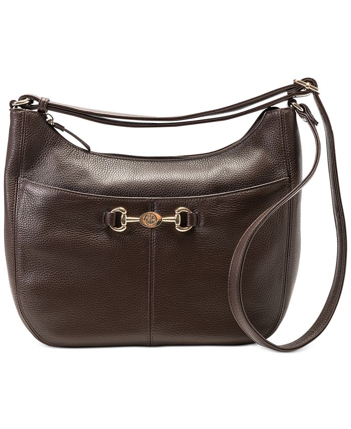 Com detalhes sofisticados de ferragens com logotipo para um acabamento chique | esta bolsa hobo Giani Bernini é luxuosa em couro. | 11L x 11A x 4-1/2P (a largura é medida na parte inferior da bolsa); peso aproximado de 0,46 lbs | Alça de 7/8L | Alça de 52L | Fecho de zíper