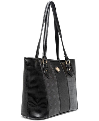 Bolsa tote feminina Giani Bernini em couro sintético com relevo Croc Colorblock, preta, tamanho regular