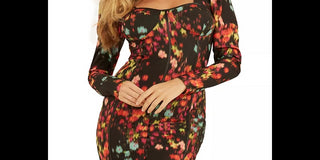 Vestido corpete feminino Rachel com manga bufante e estampa floral borrada, tamanho pequeno