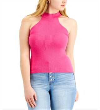 Suéter Guess Shea com gola alta canelada e manga curta, rosa, tamanho M