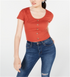 Camiseta Hippie Rose Junior com botões frontais e malha canelada, tamanho XS, marrom