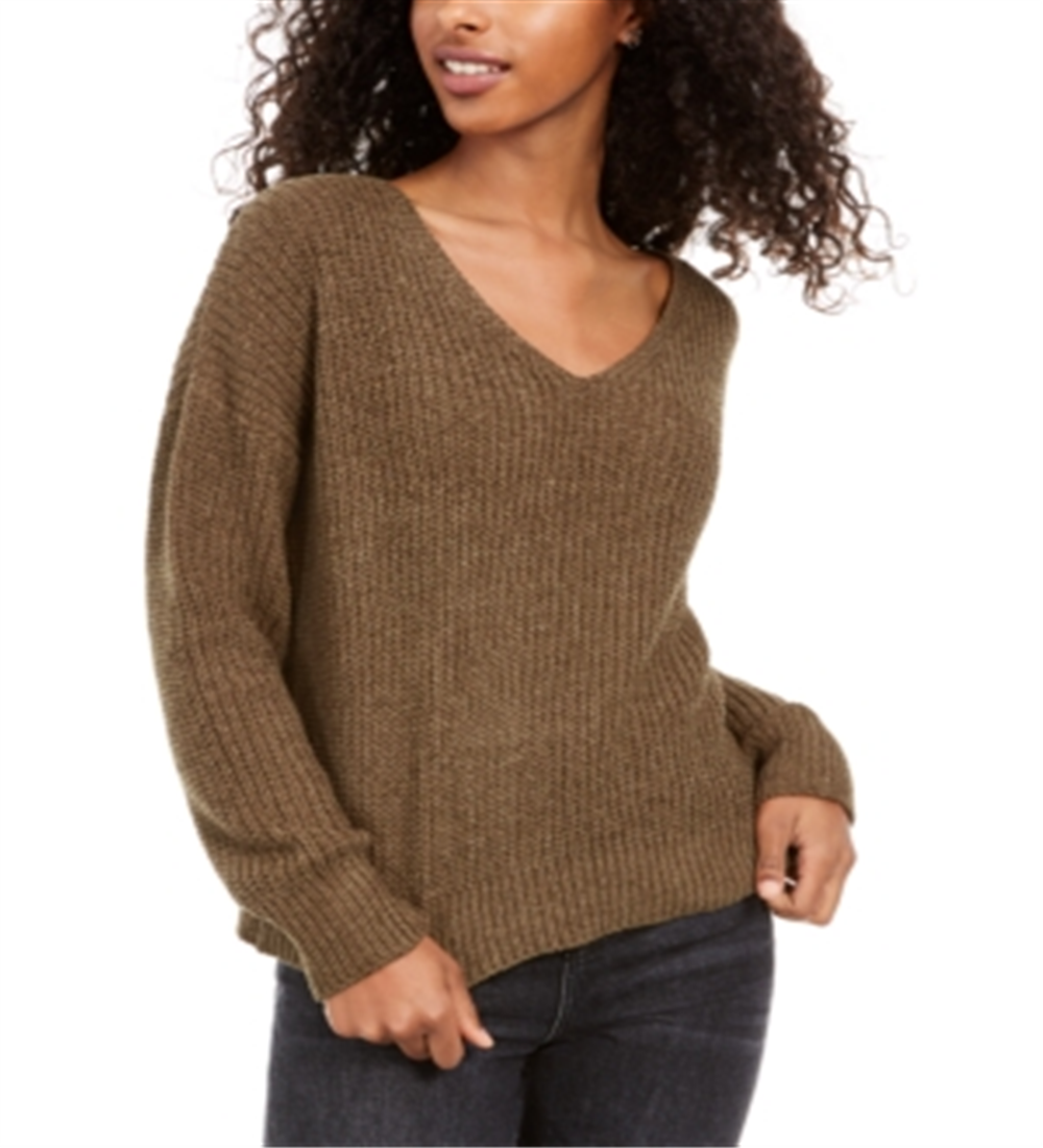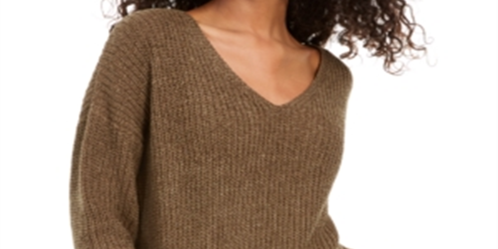 Suéter Hippie Rose Junior Chenille com decote em V, verde, tamanho médio