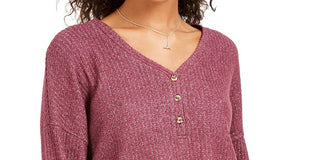 Blusa de malha Henley Waffle Hippie Rose Juniors, rosa médio, tamanho extrapequeno