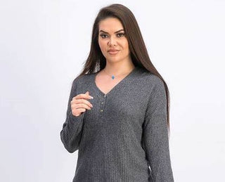 Blusa de malha Henley Waffle Hippie Rose Juniors Cinza Aço Tamanho Extra Pequeno