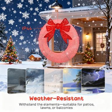 Elevate your holiday decor with this 60-inch lighted Christmas wreath, featuring a classic red bow and a stunning display of 278 warm white and multi-colored LED lights. Perfect for doors, windows, or entryway walls, this wreath brings joyful winter charm and instantly creates a festive atmosphere for family and guests.