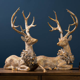 Holiday Deer Figurine with Lighted Wreath and Gold Finish (Set of 2)