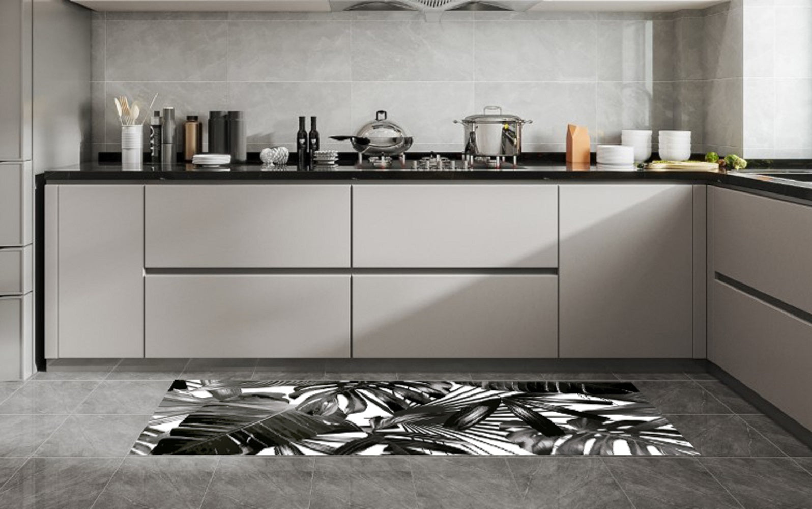 Tapete de cozinha antifadiga Black Leaves 19,6 pol. x 55 pol.