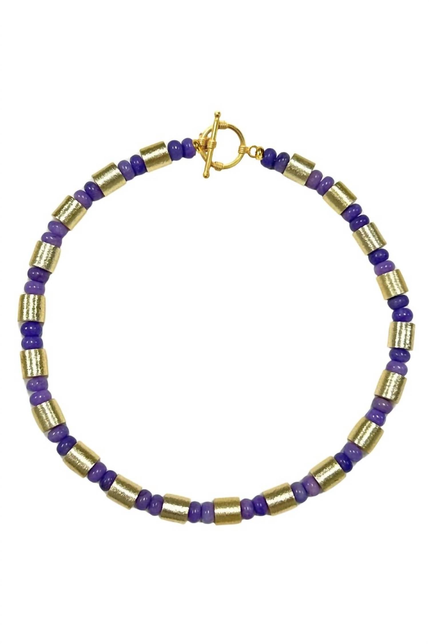 Layer this necklace or wear it on its own. Either way it's a win-win. The Women's St. Germain Collar Necklace by ACCESSORY CONCIERGE combines elegance and sophistication with its exquisite design. This necklace features 10mm purple dyed jade and 10x10mm gold-plated copper barrels, offering a luxurious feel. The piece is expertly finished with a gold-plated toggle clasp and measures 18 inches in length. Perfect for adding a subtle yet glamorous touch to any outfit.