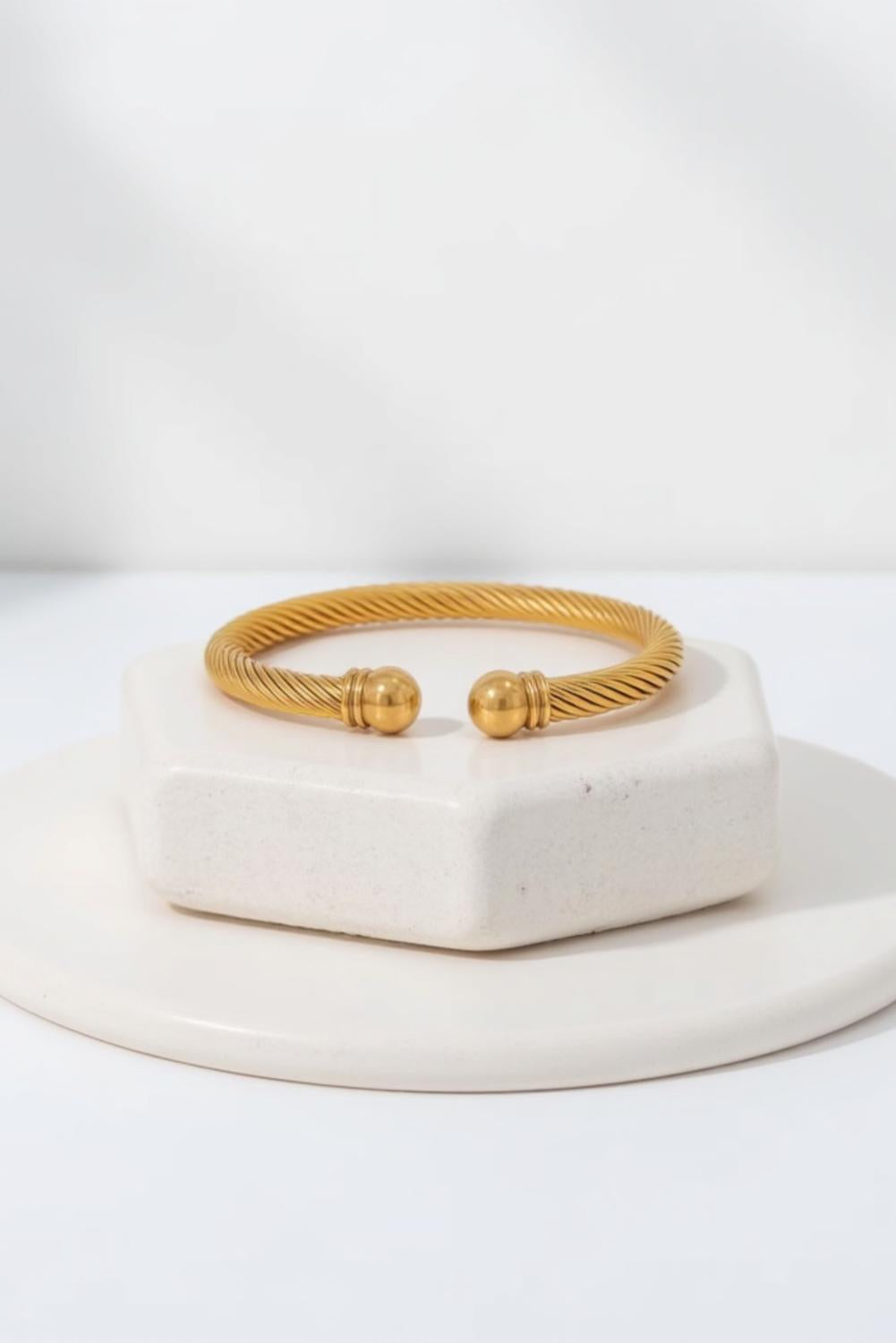This stand-out bracelet is good enough to wear on its own, or stacked with your favorites. Experience timeless elegance with the Women's Waterproof Twisted Wire Bracelet by Akalia, designed to elevate any look. This goldtone fashion bracelet features a chic waterproof design crafted with durable gold plating. Its adjustable size ensures a perfect fit for hand circumferences of 2.4-2.6 inches, while the slip-on style allows for effortless wear.