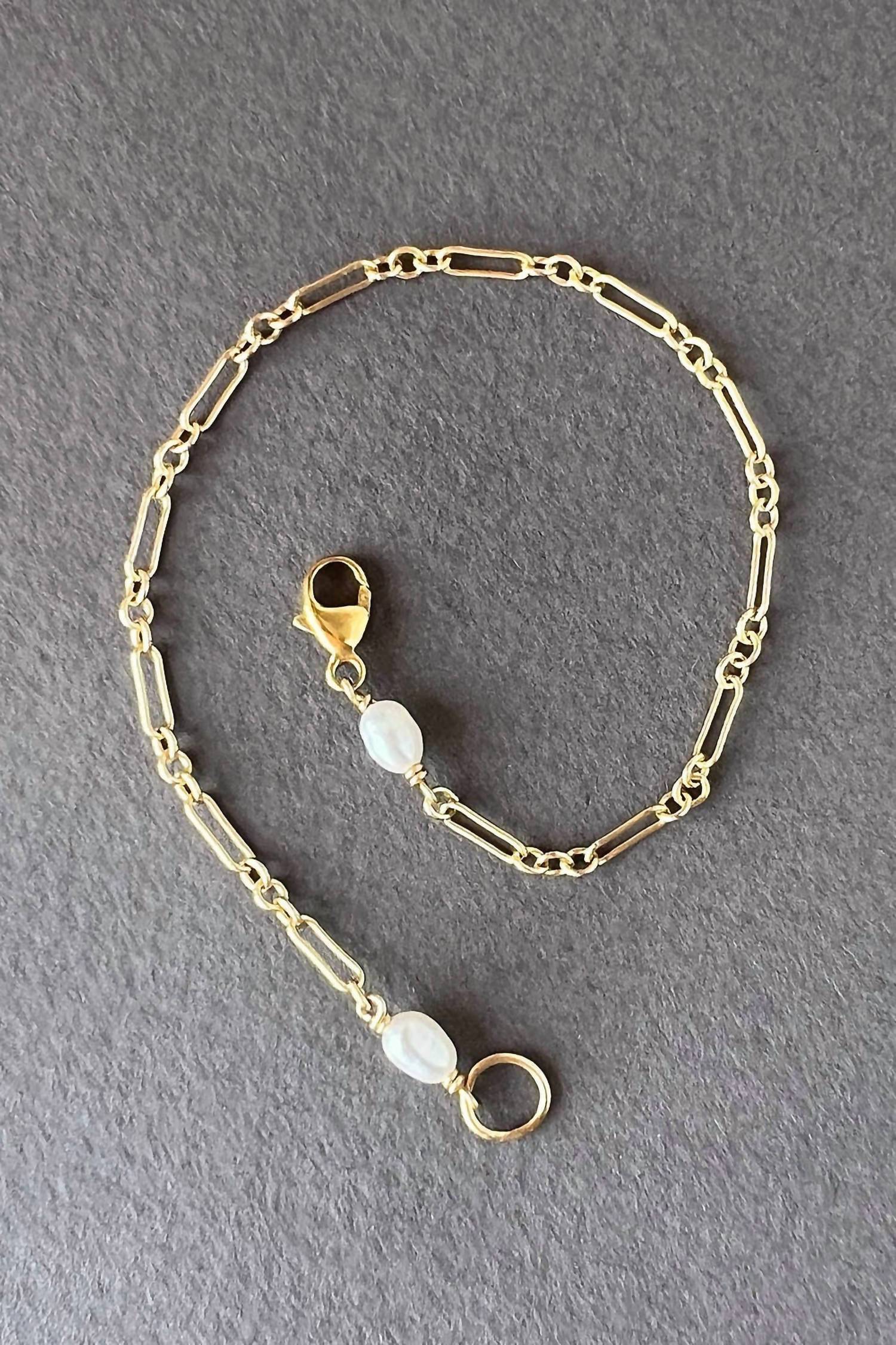 Discover the Women's Lily Chain Bracelet by Astor & Orion, a sophisticated accessory crafted with enduring 14k gold-filled links. This fashionable piece features modern chain links adorned with freshwater pearl accents, ensuring it stands out in any ensemble. With a secure lobster clasp and available in sizes 6.5, 7, and 7.5 inches, this bracelet offers both style and comfort. Perfect for daily wear, it's ethically made with the planet in mind.