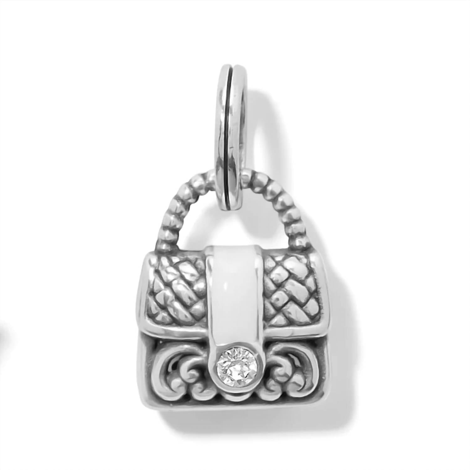 Silver plated, enamel and crystal. 5/8" x 5/8"