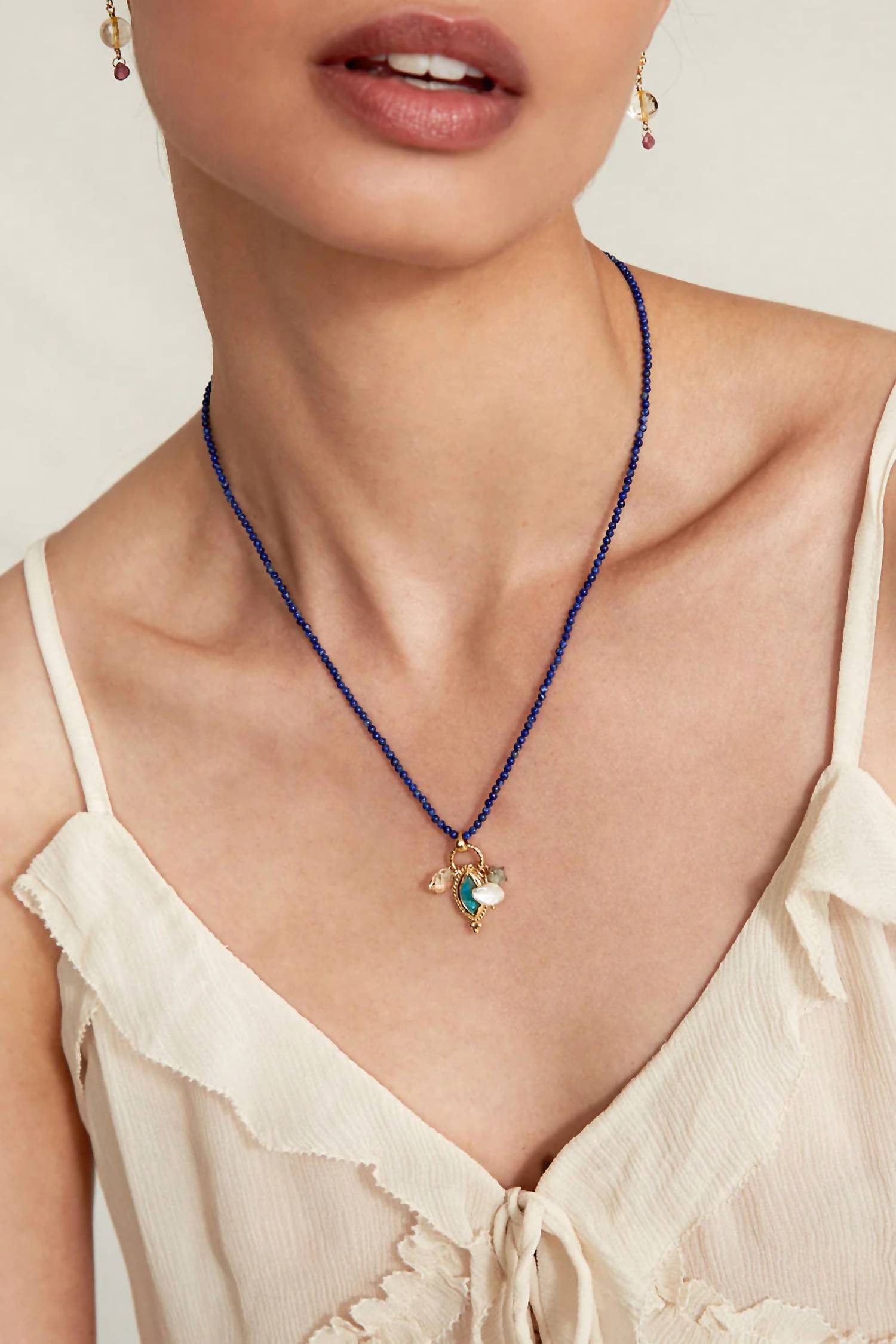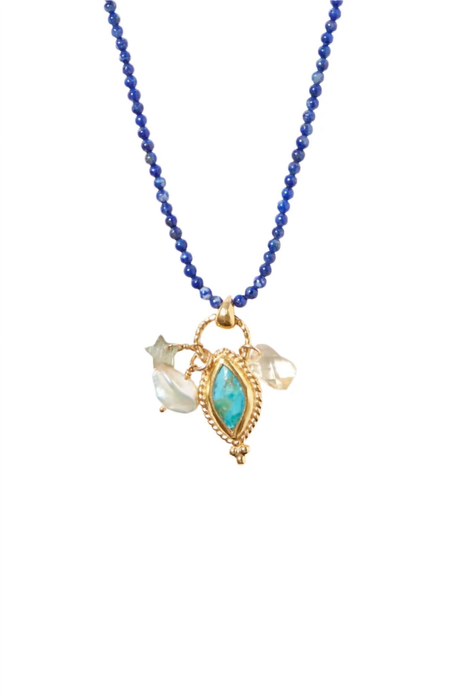 Both understated and impactful, you'll be reaching for this one-of-a-kind necklace season after season. Introduce a touch of elegance with the Women's Charm Necklace by CHAN LUU in a vibrant Lapis Mix. Handcrafted in Vietnam, this stunning piece features 18" to 20" adjustable length, made with 18k sterling silver. It showcases lapis beads and a turquoise marquise, complemented by hand-cut charms of citrine, labradorite, and freshwater pearl. Perfectly designed for the fashion-forward, this necklace exudes sophistication and charm.