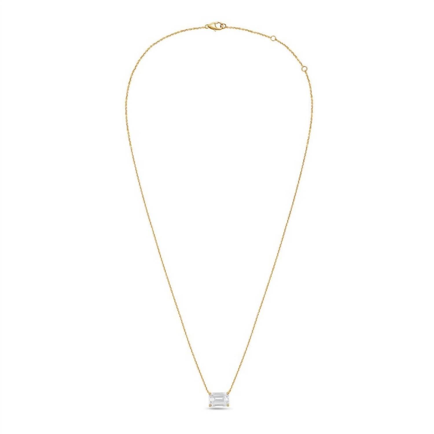 Both understated and impactful, you'll be reaching for this one-of-a-kind necklace season after season. Elevate your elegance with the Diana M Jewels 14kt 2.00cts Lab Grown East West Diamond Solitaire Pendant Necklace in stunning yellow gold. This fine necklace features a 16-inch length chain with a lobster clasp type, showcasing a lab-grown diamond with an exceptional DEF color grade and VS clarity for unmatched brilliance. The emerald-cut diamond, expertly set in a four-prong setting, boasts an excellent cut that truly catches the eye. With its birthstone for April, this piece brings timeless sophistication to any collection.