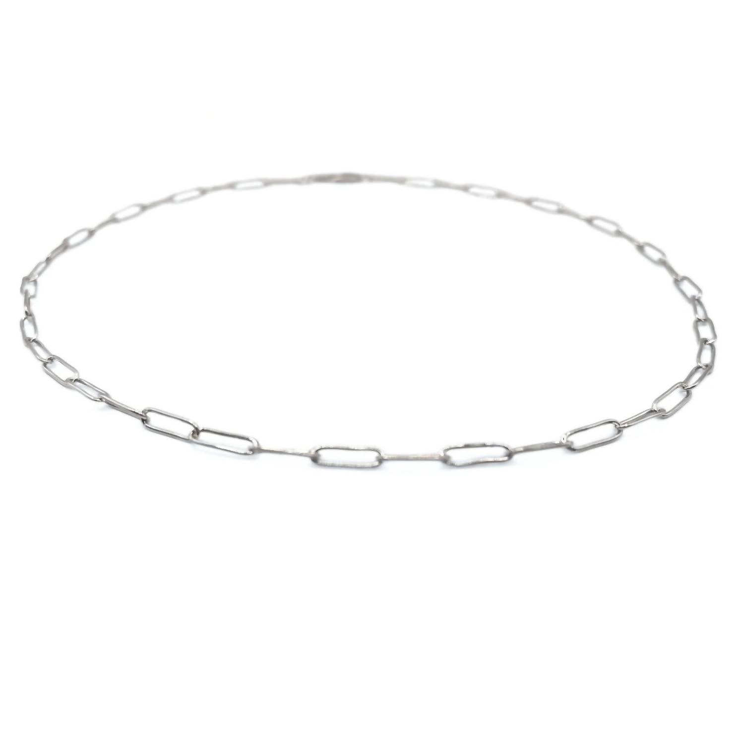 Introducing the Women's Paperclip Links Necklace by ERIN GRAY, a perfect blend of elegance and edge in sterling silver. This fashion necklace is crafted from durable sterling silver paperclip oval links, making it part of ERIN GRAY's essential layering line. With an 18-inch length, it's a versatile piece that effortlessly complements any outfit. Ideal for daily wear, this necklace is your go-to accessory for chic style.