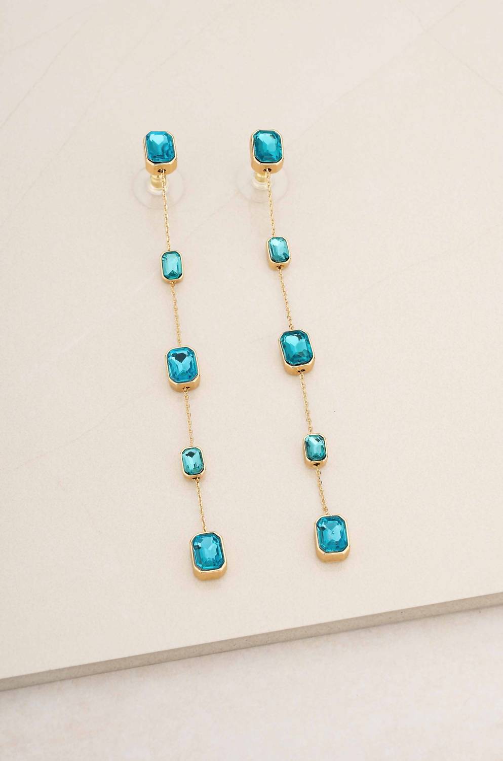 Easy and elegant earrings to complement any outfit. Elevate your style with the Women's Iconic Crystal Dangle Earrings by Ettika, an exquisite choice for fashion-forward jewelry lovers. Crafted with 18k gold plating, these earrings are adorned with aqua-colored cubic zirconia, expertly set for maximum sparkle. Measuring 4.25 inches in length, the bezelled old mine cut stones offer a luxurious, diamond-like appearance. Perfect for any occasion, these earrings are a testament to Ettika's commitment to elegant design and quality craftsmanship.