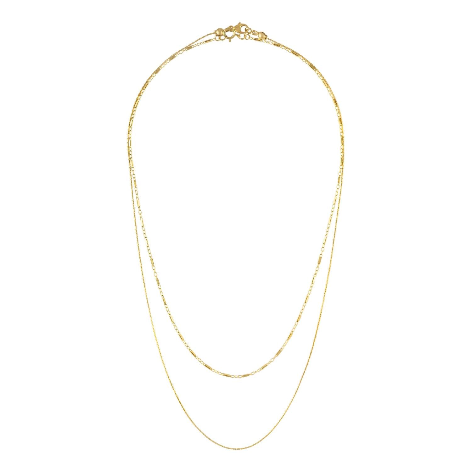 Both understated and impactful, you'll be reaching for this one-of-a-kind necklace season after season. Elevate your everyday style with the Women's Jayden Stack Necklace Set by Olivia Le in a chic goldtone finish. This versatile set features two 14K gold-filled chains: a bar chain link at a length of 14 inches and a longer minimal sleek chain at 17 inches. Both necklaces are beautifully handmade and can be worn together or separately to suit your look. Crafted with artistry and finesse, this fashion piece promises timeless elegance.