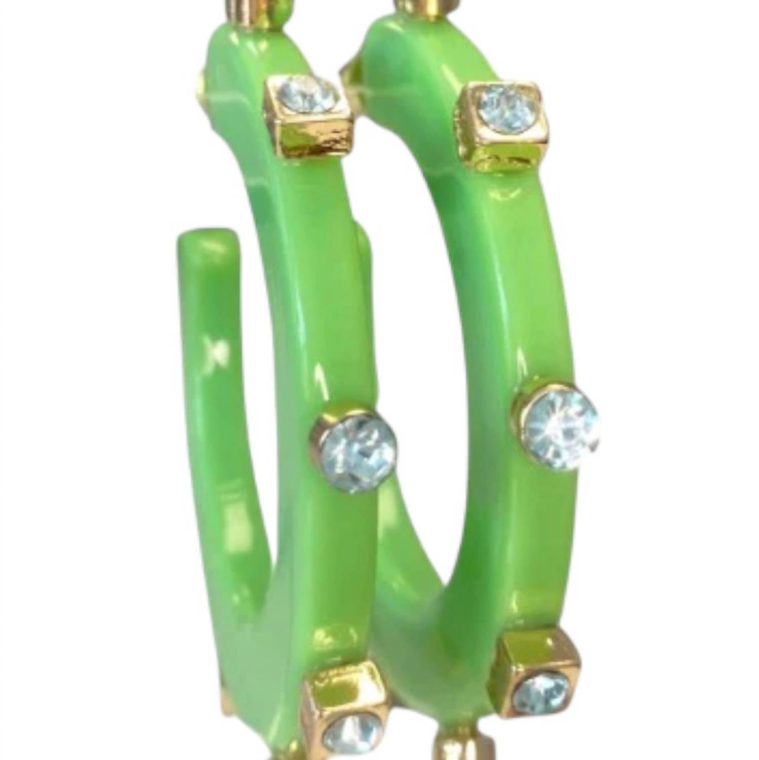 Easy and elegant earrings to complement any outfit. Elevate your look with the Women's City Girl Jewel Hoop Earring by Smith & Co, an eco-friendly and fashion-forward accessory crafted in North Carolina. These white hoops with vibrant hot pink rhinestone details add a playful sparkle to any ensemble. Made with a stainless steel post, the acrylic hoops measure 1 1/4" and are lightweight, lead-free, and nickel-free. Enjoy effortless elegance with these artfully designed Smith Dickens hoops.