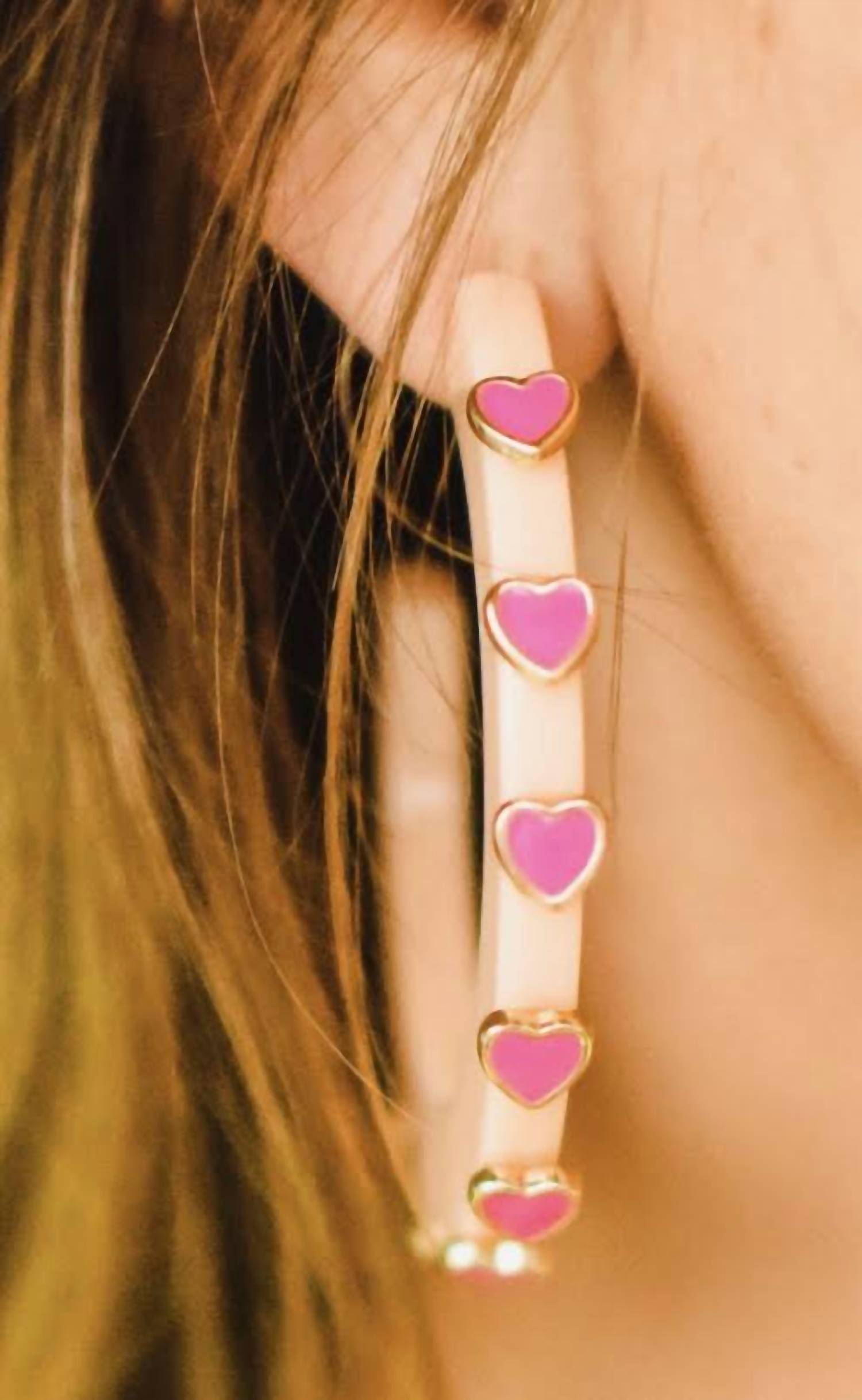 eye-catching earrings for every occasion. Celebrate love with the Women's Heart Jewel Hoop Earrings by Smith & Co, featuring a delightful Valentine's Pink adorned with red enamel hearts. Crafted with care in North Carolina, these eco-friendly acrylic hoops include a durable steel post that is both lead and nickel free, making them safe for sensitive ears. Measuring 1 1/4 inches, these hoops are the perfect gift to express your affection this holiday season. Embrace the artful design of these final sale beauties and add a playful touch to any outfit.