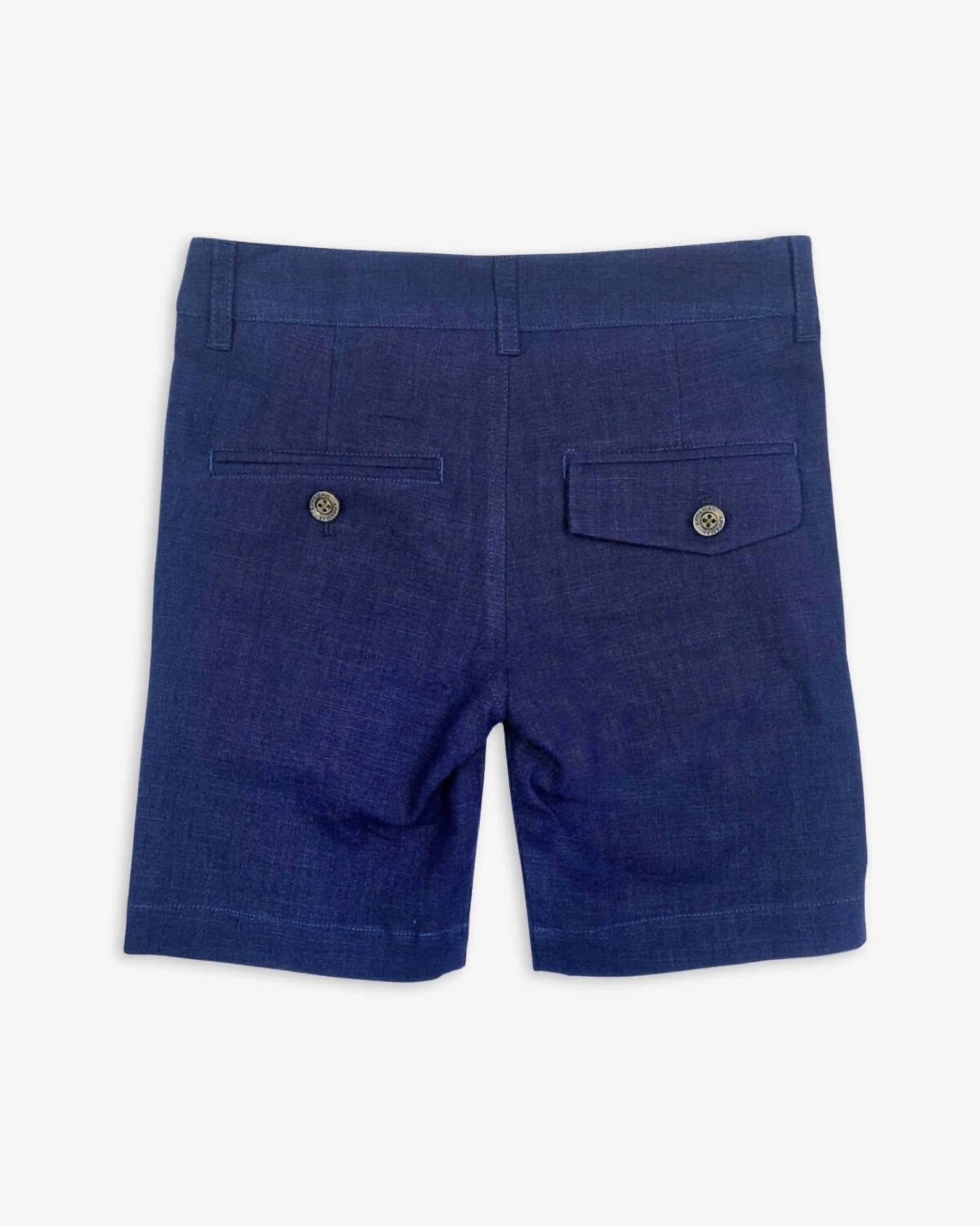 Introducing the Boy's Trouser Short by Appaman, crafted in dark navy for a minimalist, solid look. These flat-front shorts are made from 100% linen, making them perfect for spring festivities or as a sleek addition to any summertime wardrobe. Designed with two side slit pockets for convenience, these shorts can easily complement any boy's casual attire. Care instructions include machine washing and tumble drying for effortless maintenance.