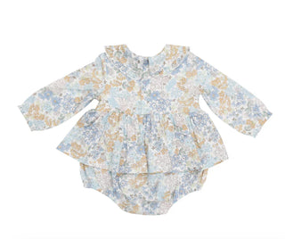 Angel Dear - Baby Girl Edith’s Floral Ruffled Bubble Romper With Peter Pan Collar & Skirt