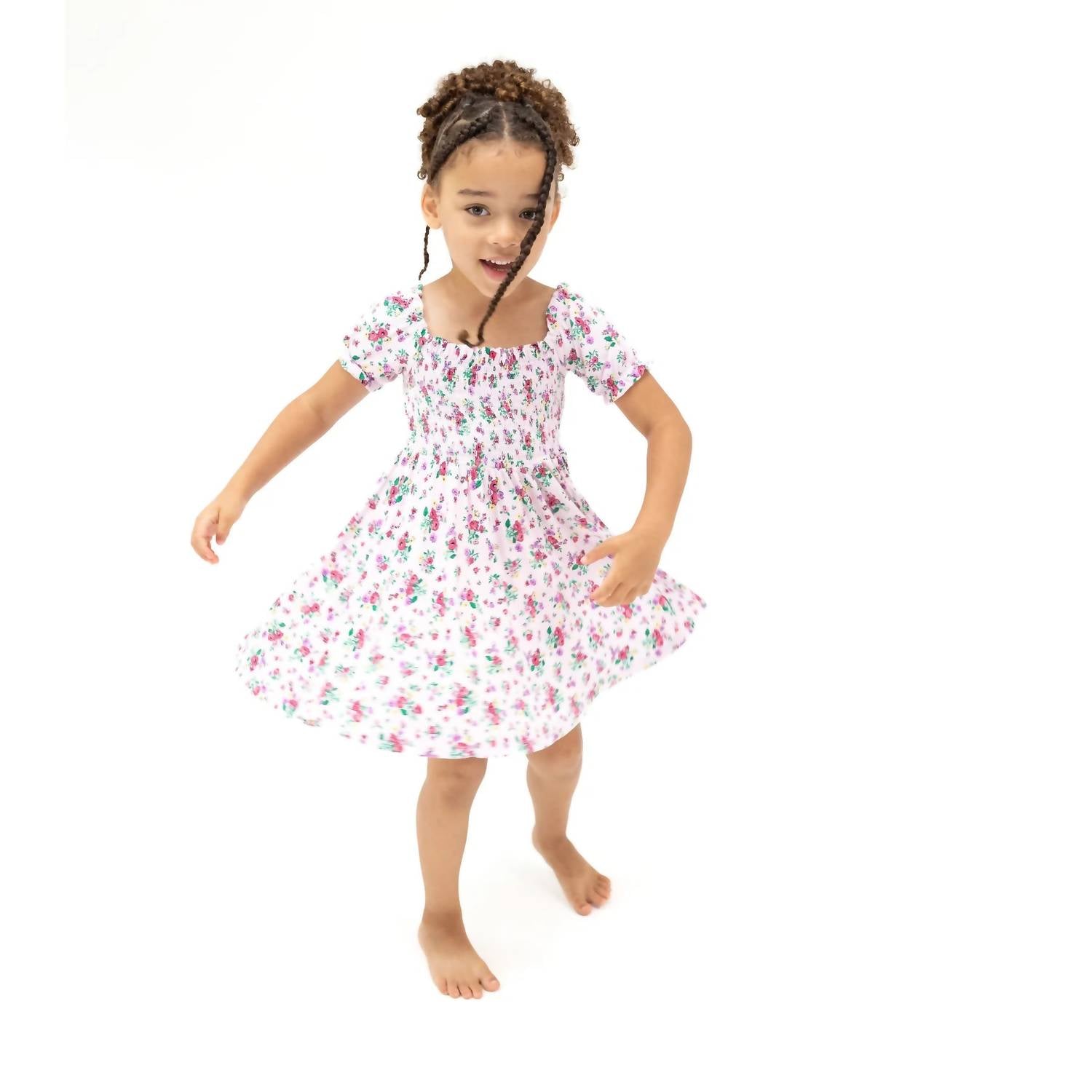 Elevate your little one's wardrobe with the Angel Dear Preppy Rose Puff Sleeve Dress, a charming choice for any casual outing. This dress features delightful girly puff sleeves and a smocked top adorned with a playful rose print, perfect for your budding fashionista. Composition: 95% Viscose From Bamboo, 5% Spandex. Care: Machine wash cold, tumble dry low or hang to dry.