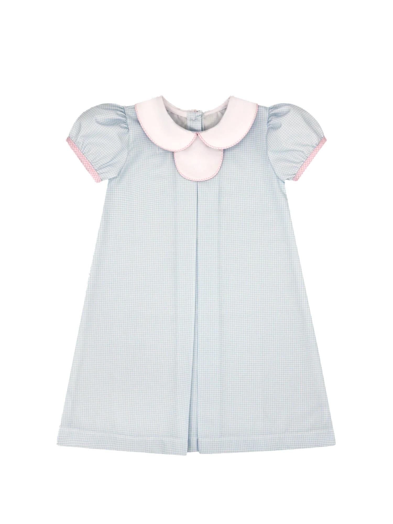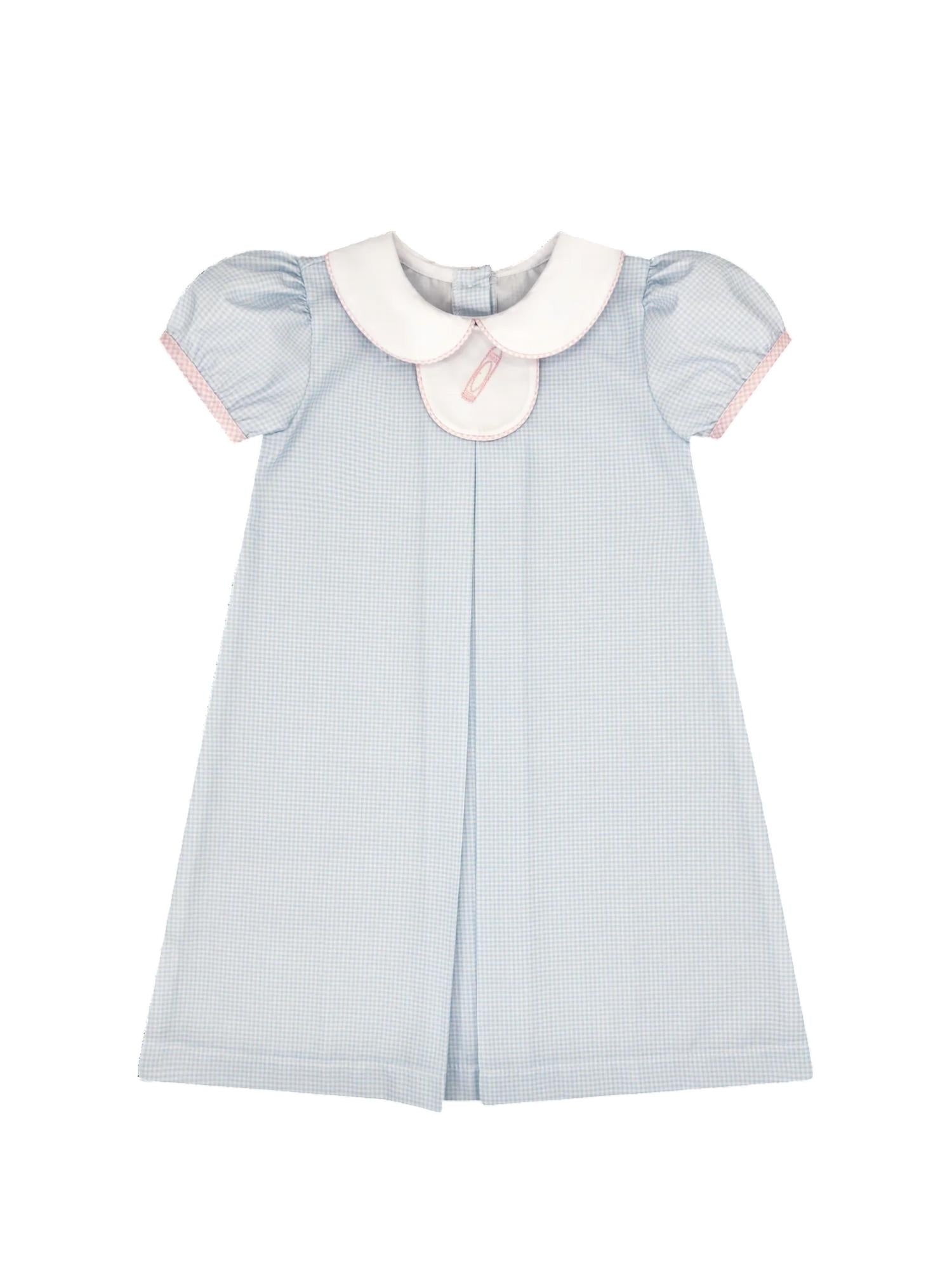 Introducing the Timeless Tab Dress by Lullaby Set, a charming addition to your little one's wardrobe in Baby Blue Minigingham. Made from soft cotton, this vintage-inspired dress features a delightful gingham pattern that is perfect for casual occasions. The dress comes with three interchangeable tabs for added versatility: a school tab, a birthday cake tab, and a blank tab. Ideal for back-to-school or Thanksgiving celebrations, this dress embodies classic charm and effortless style.