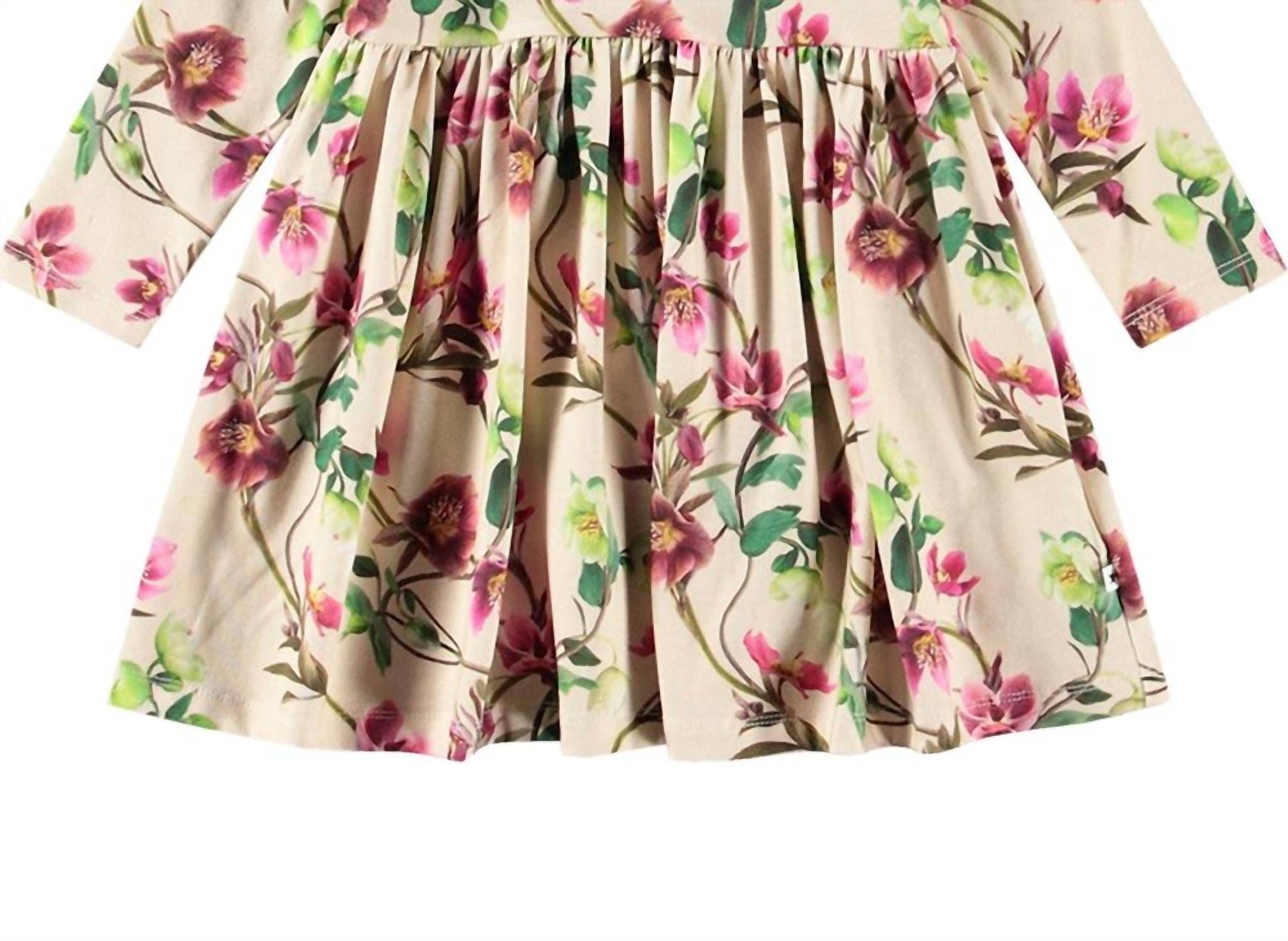 Discover the Girl's Charmaine Dress by Molo, crafted from an organic cotton blend for ultimate comfort. Featuring snug raglan sleeves and a convenient popper closure behind the shoulder, this jersey dress is both practical and chic. It showcases an all-over floral print of elegant Christmas roses in pink and white hues. Easy to care for, this dress is machine washable and perfect for spring birthday occasions.