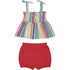 Elevate her wardrobe with the Girl's Rainbow Stripe Tank Set by Andy & Evan, a delightful ensemble bursting with color and style. This tank set features charming bows on the sleeve straps and a stylish shirred top with a two-button detail. Made from 100% polyester, it promises both comfort and vibrancy. Care instructions include machine washing cold, tumble drying on medium, and cool ironing if needed. Perfectly paired with coordinated red bubble shorts for a complete look. Imported for global flair.