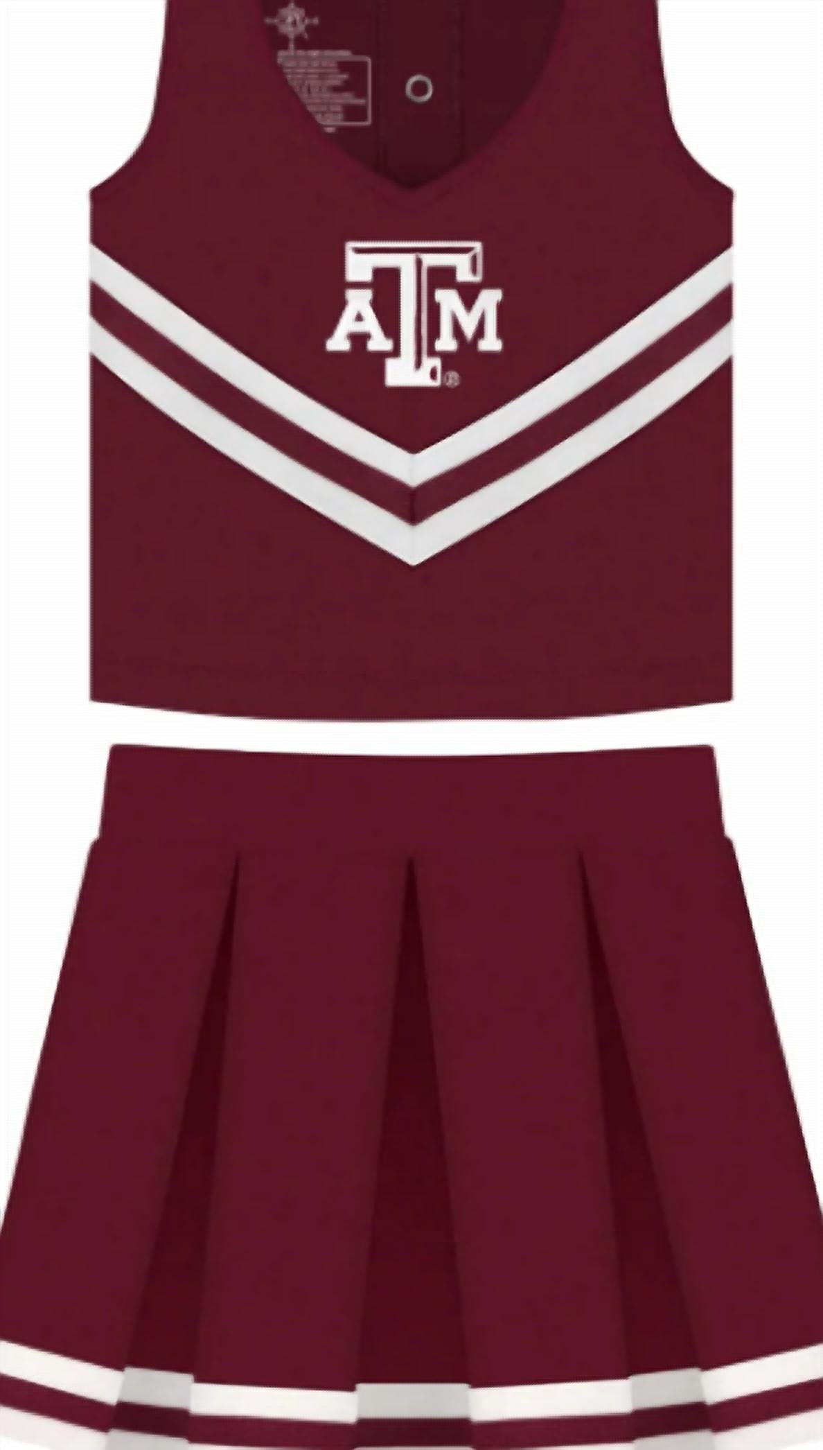 Get your young fan game-day ready with the Girl's Cheerleading Outfit by Creative Knitwear, tailored for spirited performances. This children's cheerleading set, in University Of Texas Burnt Orange, includes a top, a pleated skirt with a side zipper, and a matching bloomer, all crafted from 100% polyester. Designed to be soft and durable, this outfit supports energetic jumping, dancing, and cheering for the Longhorns. Proudly featuring official team embroidery, it's the perfect way to show team spirit.