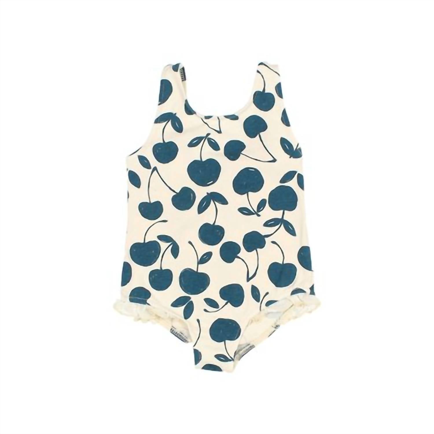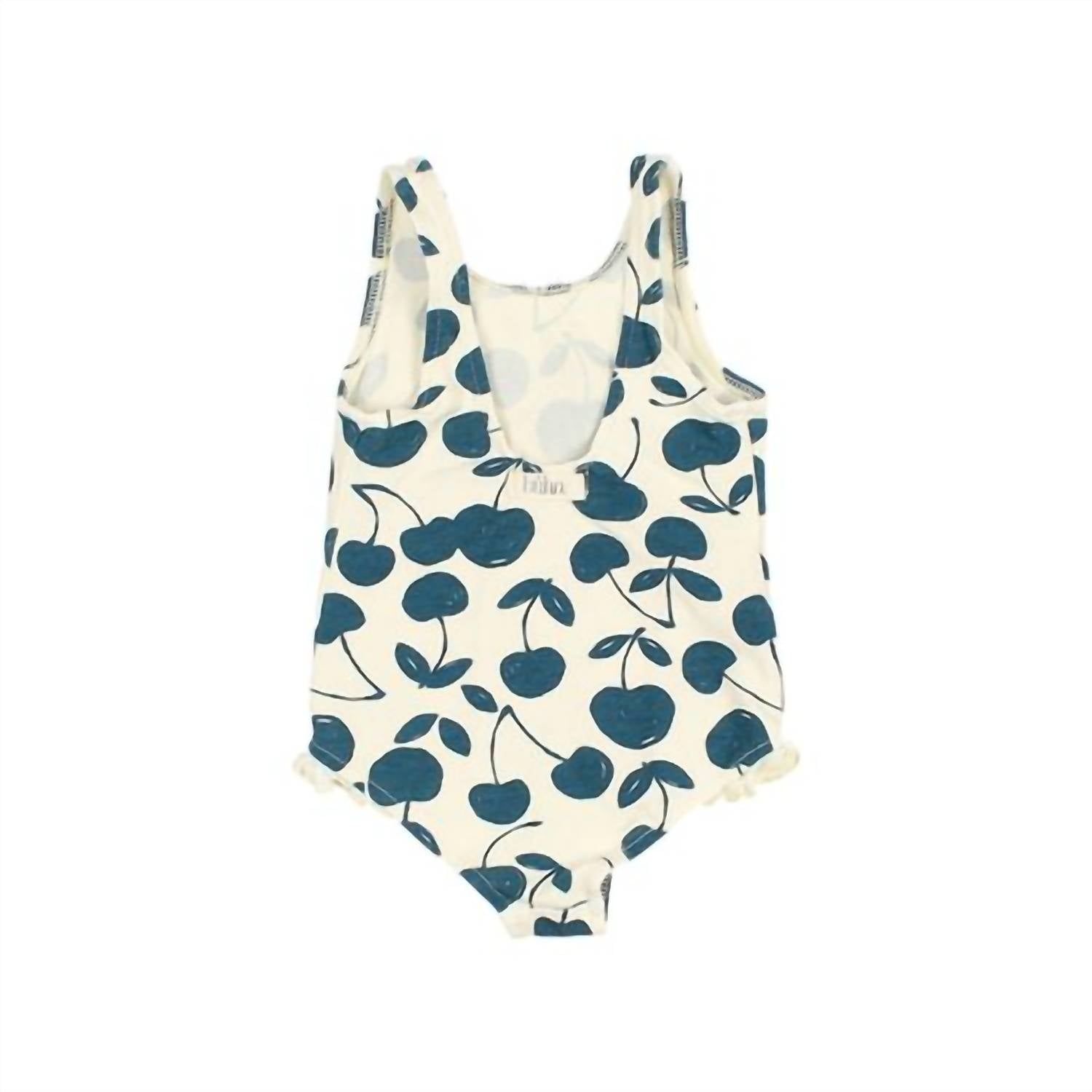 Introducing the Cherry Bathing Suit by Búho, a delightful maillot in a charming cherry print, perfect for beach days. This swimwear is crafted from a soft cotton blend, featuring 95% organic cotton and 5% elastane, with 100% organic cotton chiffon detailing, all made using fine Portuguese fabric in Spain. The design includes playful ruffles on the upper thigh, offering a touch of whimsy and style for young adventurers. Ideal for a summer escape, this suit embodies the easygoing spirit with its 90s fashion trend appeal.
