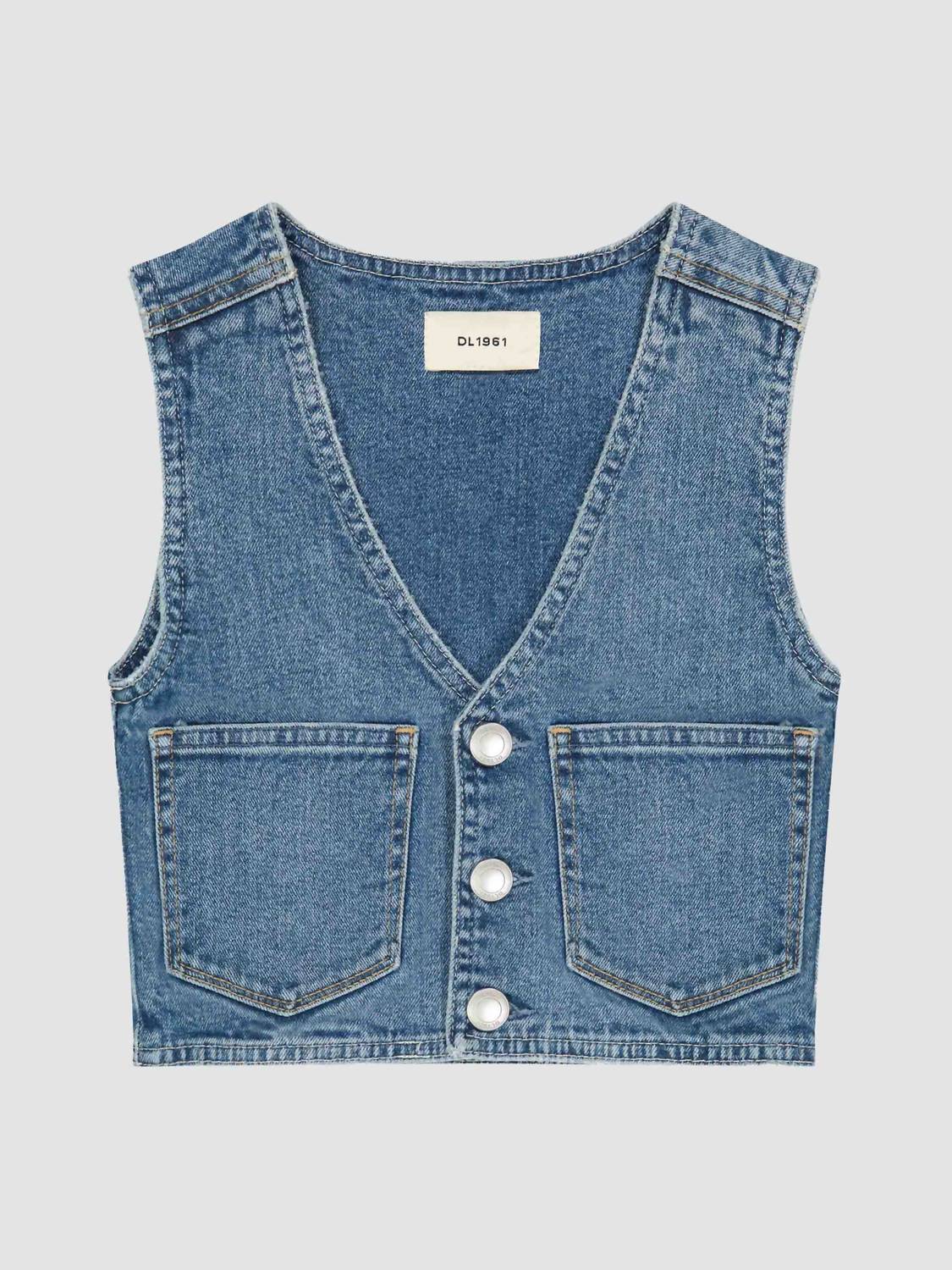 Design perfect for your little one's travel adventures. Crafted with DL Performance denim. Combines stretch technology and long-staple cotton for exceptional comfort. Comes in a vintage-inspired mid wash called Endless Sea, featuring gold hardware and multi-colored stitching. Button closure. With its V-neckline and pocket details, versatile streetwear essential for spring. Machine wash, tumble dry.